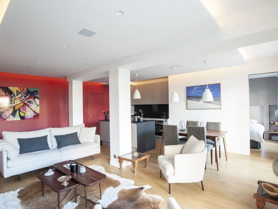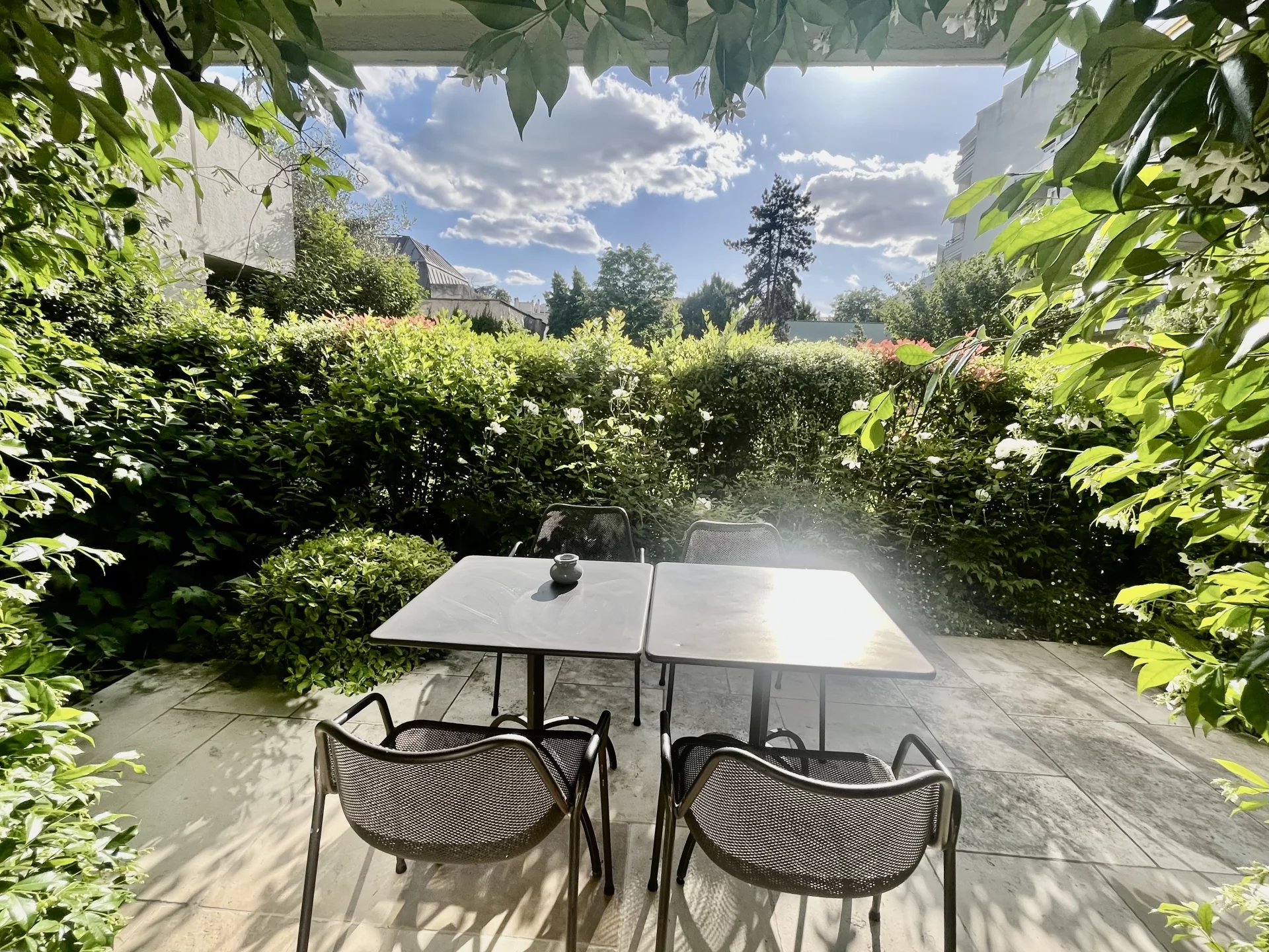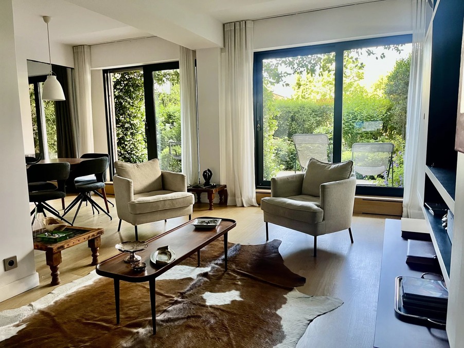 MELKEYS IMMOBILIER vous propose un appartement COUP DE COEUR de 77 m2 avec une terrasse et un jardin paysager de 40 m2 orienté sud-ouest en jouissance exclusive. Situé dans un immeuble sécurisé avec gardien, il bénéficie d'une vaste pièce de vie de 43 m2, d'une cuisine américaine aménagée et équipée, d'une suite parentale avec sa salle de douche, son dressing et ses toilettes, d'une chambre ou bureau avec sa salle de douche, un toilette séparé et un placard buanderie. L'ensemble s'ouvre sur la terrasse et le jardin. L'appartement a été entièrement rénové par un architecte avec de très beaux matériaux contemporains. Une cave complète ce bien. Possibilité d'acquérir un emplacement de parking dans la résidence au prix de 25000€. Vous serez séduit par son environnement verdoyant, sa luminosité et son calme à proximité des Passages, des commerces, des écoles et du métro.