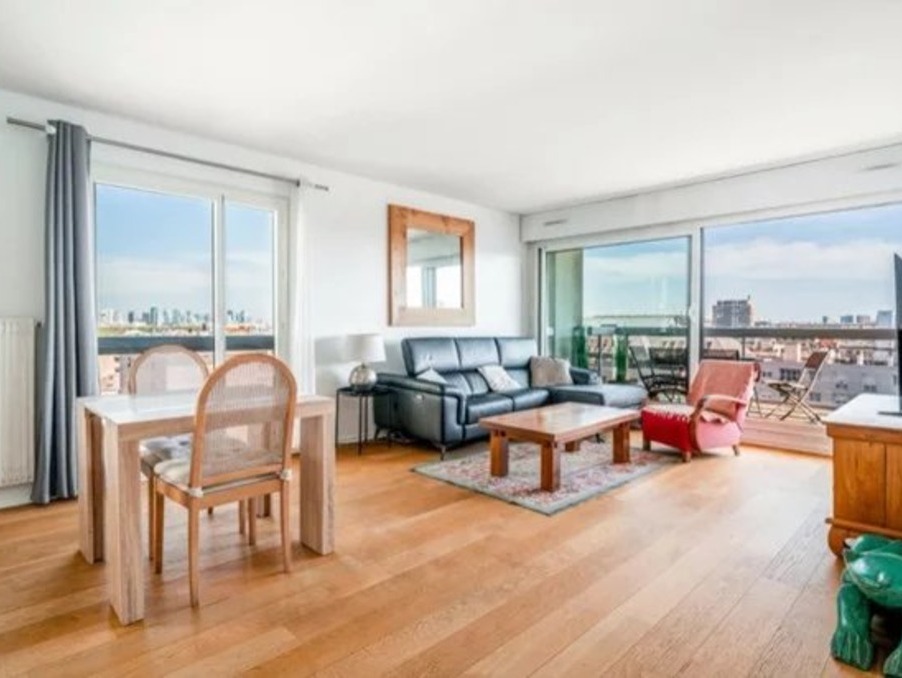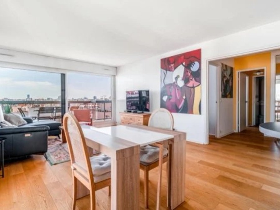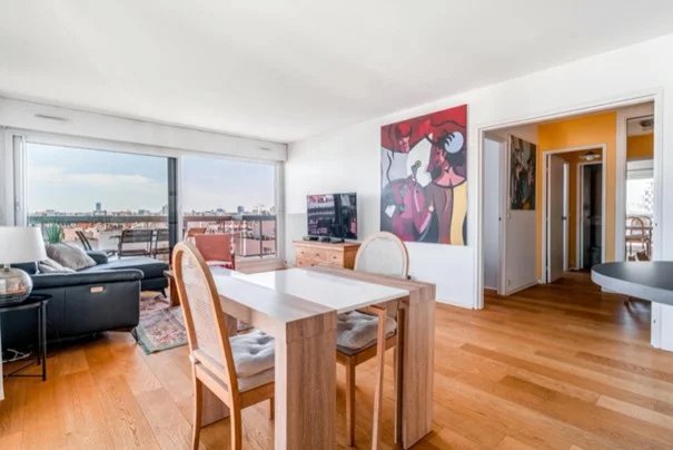 Situé en étage élevé d'une résidence de standing verdoyante avec gardien, MELKEYS IMMOBILIER vous présente cet appartement terrasse de 69m2 offrant une vue panoramique. Baigné de lumière, il se compose d'une entrée, d'un vaste séjour de 34 m² avec cuisine ouverte entièrement équipée, de deux chambres, d'une salle de bains et de toilettes séparées. Toutes les pièces donnent accès à un balcon-terrasse de 12 m², exposé est. En parfait état, il bénéficie d’un calme absolu tout en étant à proximité immédiate des commerces et des transports. Une cave complète ce bien. Possibilité d’acquérir un parking en sous-sol en supplément (25000€). A voir ! Les informations sur les risques auxquels ce bien est exposé sont disponibles sur le site Géorisques: www.géorisques.gouv.fr.