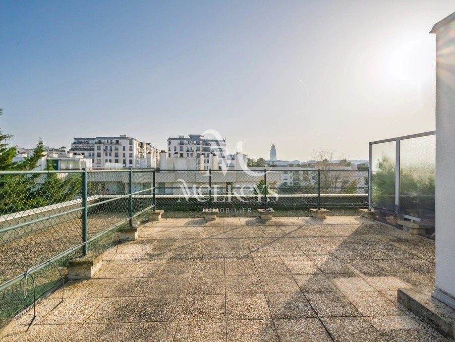 EXCLUSIVITE - Au dernier étage d’une belle résidence verdoyante avec gardien, MELKEYS IMMOBILIER vous propose ce superbe appartement traversant de 76m2 avec balcons et terrasses. Situé au 3e étage avec ascenseur, il se compose d’un séjour lumineux ouvrant sur un large balcon-terrasse de 10 m², d’une cuisine indépendante, de deux chambres confortables prolongées de balcons, d’une salle de bains et de toilettes séparées. Il dispose également d’un toit-terrasse de 33 m² en jouissance exclusive, accessible depuis l’appartement, offrant un véritable espace de vie à ciel ouvert. Une cave ainsi qu’un emplacement de parking extérieur complètent ce bien. Le cadre privilégié à proximité du bois, la luminosité et le calme absolu au dernier étage en font un bien rare à la vente. Travaux de rafraîchissement à prévoir.