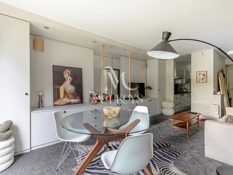 Dans un bel immeuble sécurisé, MELKEYS IMMOBILIER vous propose un bel appartement de 51 m2 avec une terrasse privative de 12m2 donnant sur les jardins de la copropriété. Il est composé d'une belle pièce de vie, d'une cuisine séparée aménagée et équipée, d'une chambre avec rangements, d'une salle de douche et de toilettes indépendantes. L'ensemble s'ouvre sur la terrasse. Une cave et un box complètent ce bien. Environnement verdoyant, calme, à proximité des Passages, des commerces, des écoles et du métro.