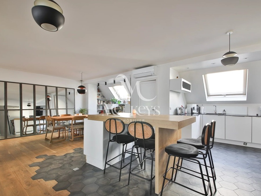 A proximité des commerces et de Porte de Saint Cloud, MELKEYS IMMOBILIER vous propose en exclusivité ce superbe triplex de 173 m². Situé aux trois derniers étages d’une petite copropriété, ce bien offre un esprit loft au caractère résolument atypique. Dès l’entrée, vous serez séduit par ses beaux volumes, sa luminosité grâce à de nombreuses ouvertures, et son atmosphère unique "comme une maison”.